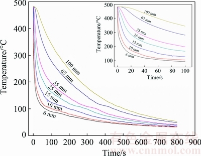 Fig. 7 Calculated cooling curves at center point of quenching surface