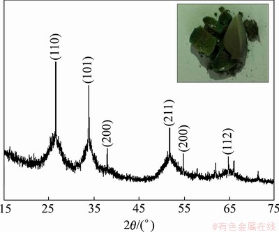 Fig. 1 Morphology of dried precipitate after centrifugation (inset) and its XRD pattern