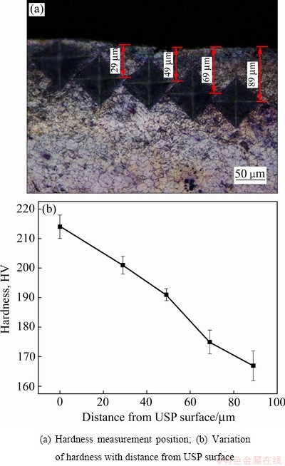 2.2 USP对AZ31镁合金显微组织和硬度的影响