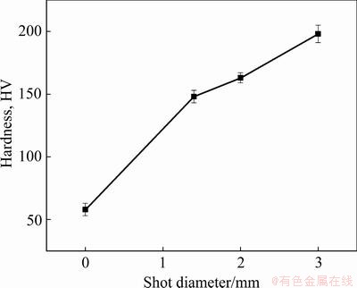 Fig. 21 Hardness of AZ31 magnesium alloys treated with different USP shot diameters