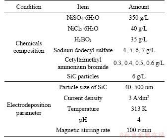 [20] ZHOU Y, XIE F Q, WU X Q, ZHAO W D, CHEN X. A novel plating apparatus for electrodeposition of Ni-SiC composite coatings using circulating-solution co-deposition technique [J]. Journal of Alloys and Compounds, 2017, 699: 366-377. DOI: 10.1016/j.jallcom.2016.12.331.