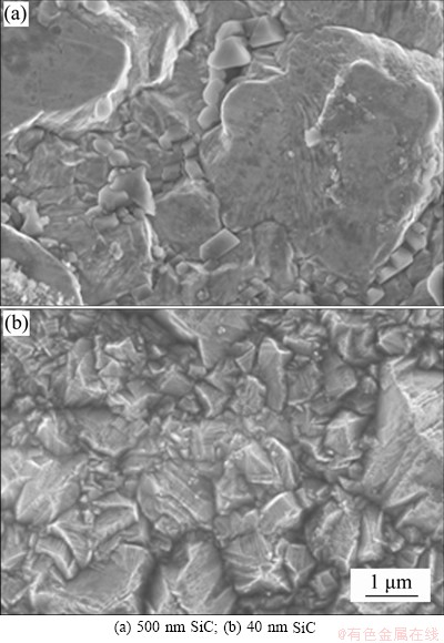 2) The anionic surfactant SDS is more effective at dispersing 40 nm silicon carbide particles than the cationic surfactant CTAB. The surface coating with CTAB is duller and rougher. However, the choice of surfactant has less influence on the dispersion of 500 nm silicon carbide particles.