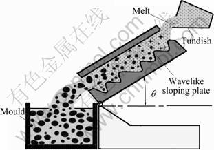 图1 波浪形倾斜板流变铸造的基本原理示意图