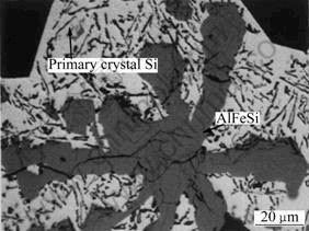 Fig.8 Surface cracks of AlFeSi phases in Al-20%Si-3%Fe alloy prepared by electromagnetic stirring[15]