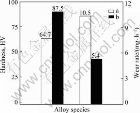 Fig.10 Comparison of Vickers-hardness and wear rate of Al-18%Si-5%Fe alloy processed by WSP rheocasting and spheroidisation treatment with those of Al-18%Si alloy: (a) Al-18%Si; (b) Al-18%Si-5%Fe