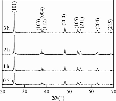 图8 不同煅烧时间的Er-TiO2光催化剂的XRD谱