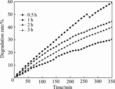 Fig. 10 Effect of calcination time on photocatalytic degradation rate of Er-TiO2 films