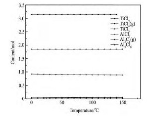 图1软件模拟化学成分图Fig.1 Chemical composition chart of software simulation Ti Cl4(g)and Al2Cl6(g)shown at bottom to be not obvious owing to content being too little