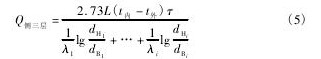 其中,L为3 层壁的高度,t内,t外分别为内外壁的温度,τ 为散热时间,λi为第i层材料的导热系数,dHi,dBi分别为第i层的外径和内径。代入数据计算可得Q侧三层= 58. 43 W。