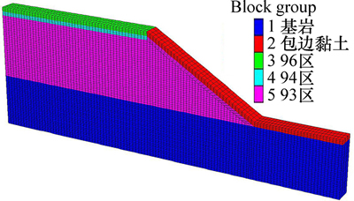 Fig. 8 Grid and partition materials of three-dimensional equivalent model
