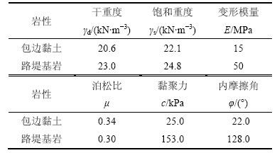 Table 3 Physical & mechanical parameters of package edge clay and embankment rock