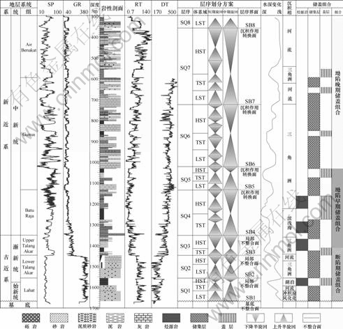新生代以来,南苏门答腊盆地经历了一次完整的海进-海退旋回,发育冲积扇、河流、三角洲和浅海等沉积建造,层序的形成与发育主要受构造运动和海平面升降的控制[15-16]。综合该区的岩芯、测井、地震