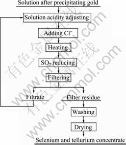 Fig.1 Flow sheet of recovering selenium and tellurium concentrate from solution after precipitating gold