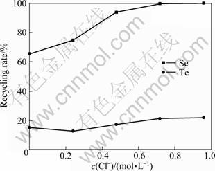 Fig.3 Effect of concentration of Cl- on recycling rate of selenium and tellurium