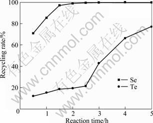 Fig.4 Effect of reaction time on recycling rate of selenium and tellurium