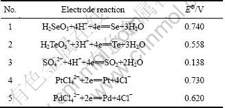 在含Se(Ⅳ)和Te(Ⅳ)的沉金后液中通入SO2后,所涉及氧化和还原反应如表2所列[22-23]: