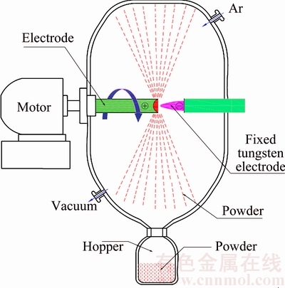 Fig. 1 Schematic of plasma rotating electrode process (PREP)