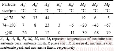 Table 4 Phase transformation temperatures for PREPed TiNi powders with different particle sizes