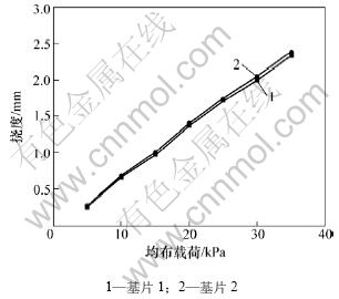 图1所示为经位移传感器测到的真空玻璃内外2块基片在不同载荷下中心点处的最大挠度分布图。