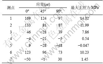 表1 均布载荷下真空玻璃表面各测点的应变及最大弯曲主应力
