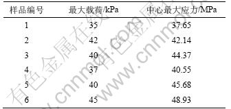 通过对6块真空玻璃进行极限承载试验,得到最大载荷及破坏瞬间真空玻璃板中心的最大弯曲应力(主应力),见表2。