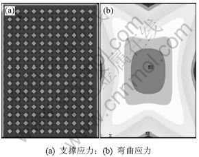Fig.5 Bending stress and supporting stress in vacuum glazing by ANSYS