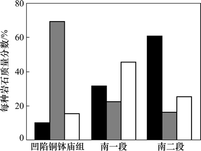 图3 贝尔凹陷铜钵庙组、南一段、南二段储层岩石类型组成直方图