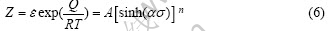 式中:A1、A2、A、n、n1、α和β均为常数;T为绝对温度;Q为热变形激活能;R为气体常数;Z为Zener-Hollomon参数。式(5)中α是可调常量,且满足α=β/n1。