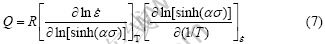 假定变形激活能Q与温度T无关,对式(5)两边取对数后偏微分可得