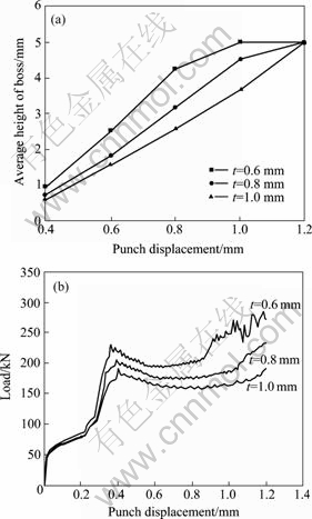The effect of sidewall thickness(t) on boss forming is shown in Fig.7(a). It can be seen that the decrease in the thickness of the sidewall can enhance the efficiency of boss formation.