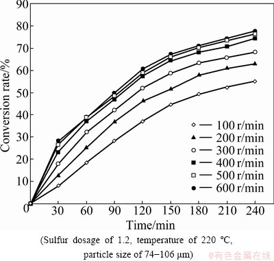 Fig. 2 Effect of agitation speed on conversion rate of hemimorphite