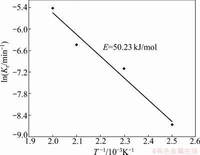 Fig. 12 Arrhenius plot of hemimorphite sulphidation reaction