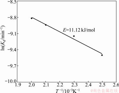 The slopes of the curves in Fig. 9 can be used to determine the apparent reaction rate constants at various temperatures at later stages. The Arrhenius plots are shown in Fig. 10. The calculated activation energy is 11.12 kJ/mol for the later stages.
