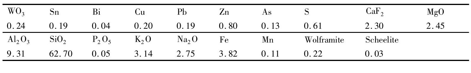 纯矿物试样为 - 40 μm占99% , - 20 μm占85% 以上的微细粒黑钨矿,纯度98% 以上,试样多元素分析结果见表1。