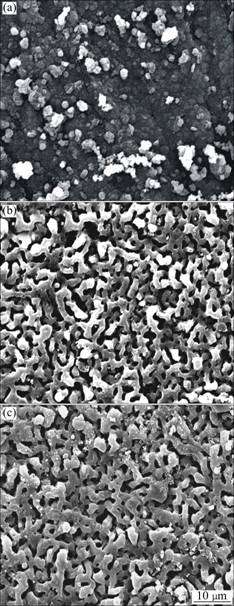 Fig.4 Surface morphologies of oxide films formed at different current densities after corrosion tests: (a) 3 A/dm2; (b) 4 A/dm2; (c) 5 A/dm2