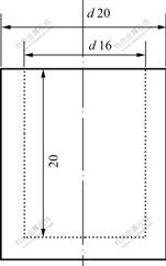 实验原料有W粉(粒度3 μm),雾化Cu粉(粒度74 μm),电解Cu粉(粒度43 μm),超细Cu粉(粒度13 μm)。骨架中添加2.5%(质量分数)Cu粉,为提高熔渗性能添加0.3%(质量分数)Ni粉,粉末按球料比(质量比)1?2干混6 h。实验设计30%和35%(体积分数)两种粘结剂的添加量,混合粉末在一定温度下混炼2 h后制粒,压制成d 18 mm的圆柱形预成形坯。将预成形坯加热到压制温度(45~90 ℃)后,在63.6 MPa的压力下压制成杯状试样,如图1所示。