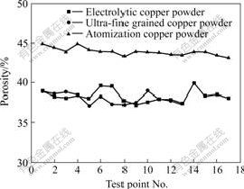 Fig.4 Porosity distribution of tungsten skeleton by adding electrolytic copper powder and 35% binder
