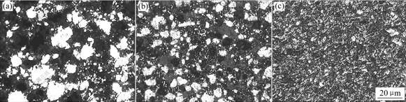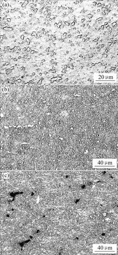 图10所示为添加不同Cu粉的钨骨架在熔渗后的金相照片。可以看出,添加超细Cu粉和电解Cu粉的样品金相组织都较为细小且分布均匀;而添加雾化Cu粉的样品出现了大量孔洞。
