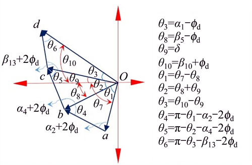 The velocity vectors are considered to be in the form shown in Figure 5, and are obtained by Eqs. (20) to (27). Considering the failure wedges in Figure 4, and assuming 8 input parameters (α), the unknown parameters can be obtained. Relative and absolute velocity vectors in the upper bound limit method are similar to those shown in Figure 3 and are obtained by Eqs. (20) to (27).