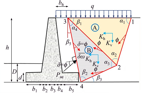 The seismic active force exerted on the retaining wall can be calculated based on the failure mechanism shown in Figure 6.
