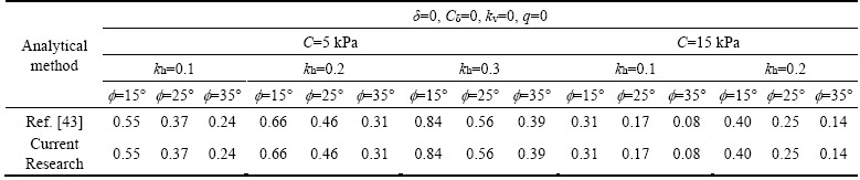 Table 6 Comparison of maximum seismic active coefficient in this study with results provided by SHUKLA et al [43]