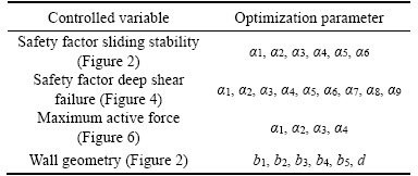 As stated in previous sections, the dimensions of the wall influence the stability safety factors and the seismic active force of the wall. Therefore, the dimensions of the wall are to be optimized at the same time as the failure mechanisms of the soil are determined (to control the seismic stability safety factors of the wall). When designing a retaining wall by the upper bound method, the designer must try to minimize the weight of the wall as one maximizes the active force and minimizes the stability safety factor. Considering the fact that multiple parameters (active force, stability safety factors and the weight of the wall) are to be optimized, a multi-objective optimization should be used in the analysis.