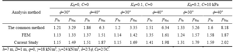Table 10 Values of stability safety factors in FEM, limit equilibrium method (common design method) and upper bound limit method (present study)