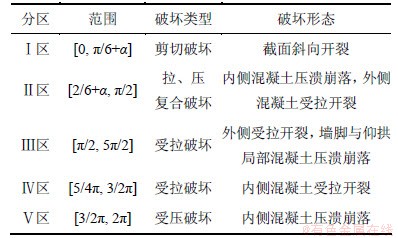 图11 浅埋偏压隧道衬砌结构破坏机制分区图