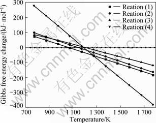 As shown in Fig. 3, these process reactions begin at 1 250 K or below, but the experiments show that all these begin above 1 393 K. This is because the reaction rate of solid-solid phase reaction is not only relative with temperature, but also with activation energy, distribution of grain, contact area of reactant and etc [18].