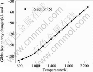 Fig. 3 Relationship between Gibbs free energy change and temperature under 120 Pa