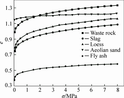 The stress-strain curves for the five backfill materials under compaction are shown in Fig. 6.