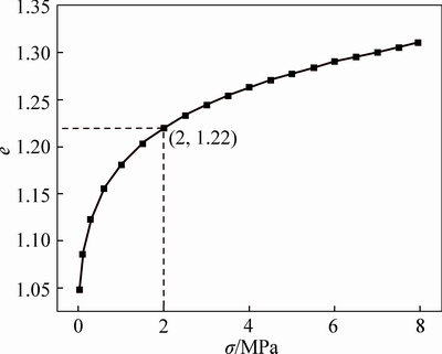 From the above compaction tests, there is an exponential form of stress-strain relationship therein, solving this relationship and obtaining strain-stress formula as
