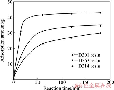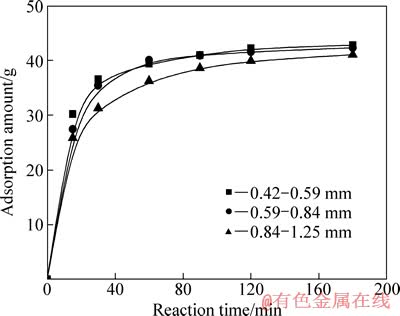 Fig. 3 Adsorption curves of D301 resin with different particle sizes