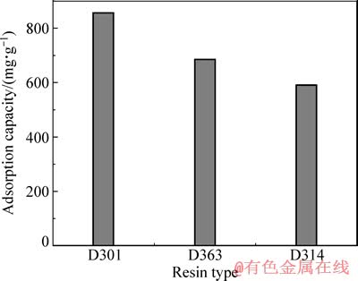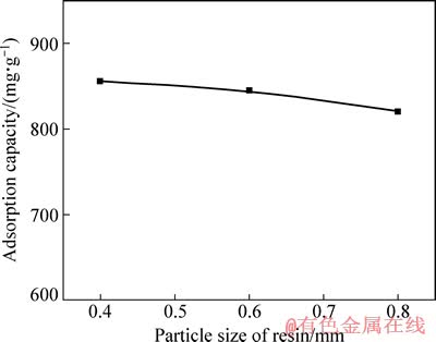 Fig. 4 Effect of particle size of D301 resin on adsorption capacity